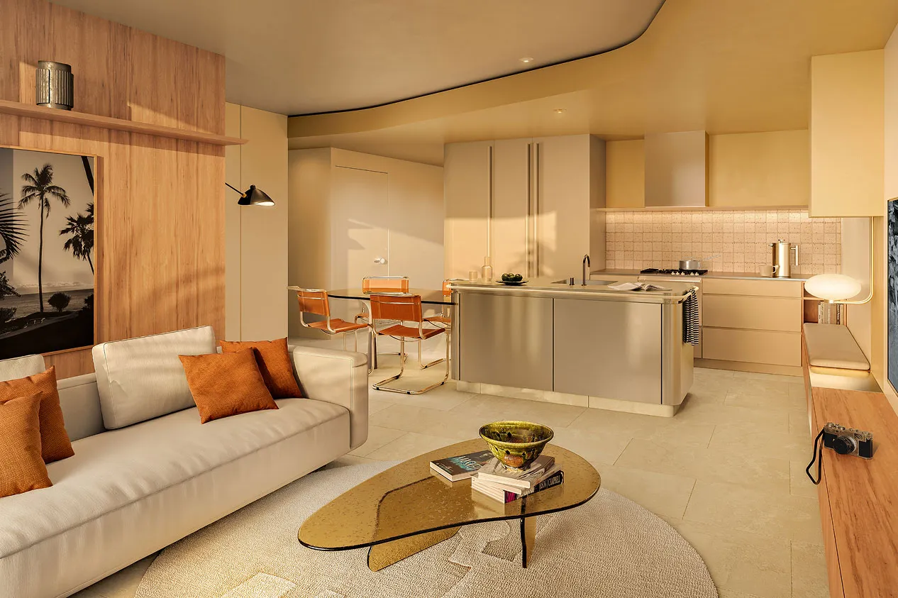 Step into a space where modern elegance meets coastal warmth. At The Frederick, every room is crafted to embrace the natural beauty of its surroundings. Bask in the soft, buttery neutral palette and the elegance of stone floors, creating a serene and timeless atmosphere. Thoughtfully designed to blend style and function, the interiors reflect a commitment to quality with custom finishes and natural materials, making every space feel like an inviting sanctuary.